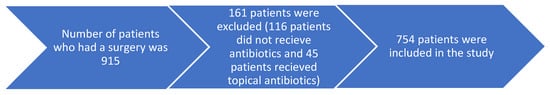 - Hammad, M.A.; AL-Akhali, K.M.; Mohammed, A.T. Evaluation of surgical antibiotic prophylaxis in aseer area hospitals in kingdom of Saudi Arabia. J. Phys. Clin. Sci. 2013, 6, 1–7. Available online: https://www.arpapress.com/Volumes/JPCS/Vol6/JPCS_6_01.pdf (accessed on 21 January 2022).