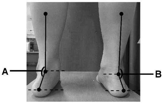 Calcaneal valgus angle measurement [A: Left calcaneal valgus angle (°), B: Right calcaneal valgus angle (°)].