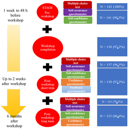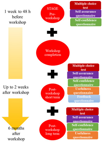 - A similar MCT to that of stage 1, but with questions designed to compare the student’s understanding of the topic and practical skills before and at two time points after the workshop.