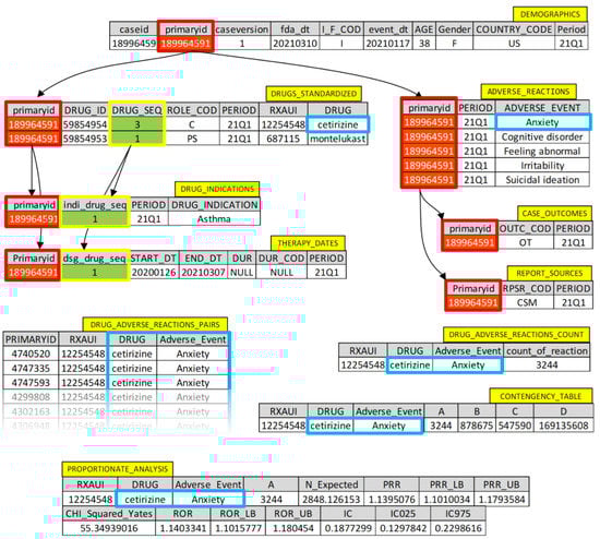 All “DRUG” files from the FAERS/LAERS database were merged into a “DRUG_combined” table. Then, the provided New Drug Application (NDA) number in the “DRUG_combined” table was used to map drug names to FDA-approved drugs database (Drugs@FDA), which was already mapped to RxNorm. Drugs@FDA can be downloaded from: https://www.fda.gov/drugs/drug-approvals-and-databases/about-drugsfda (Accessed on 1 December 2021).