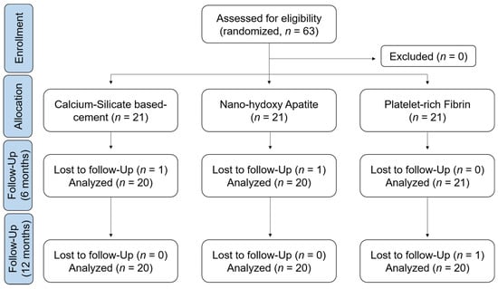 - Keswani, D.; Pandey, R.K.; Ansari, A.; Gupta, S. Comparative evaluation of platelet-rich fibrin and mineral trioxide aggregate as pulpotomy agents in permanent teeth with incomplete root development: A randomized controlled trial. J. Endod. 2014, 40, 599–605. [Google Scholar] [CrossRef]