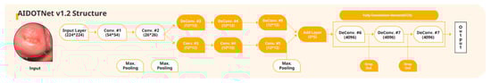 - Feature extraction and cervical cancer diagnosis module have an important role in exploring the regions of the colposcopic images which correspond to suspicious precancerous cervical lesions. This module is implemented by CNN-based multi-class detection model named AIDOTNet v1.2, which was trained with multi-category images that consists the location of low and high-grade lesions. AIDOTNet v1.2 utilizes a pre-trained model to extract the suspicious region from a given image for predicting the lesion location in the image. In other words, the model leverages the feature extraction from the pre-trained model to locate the suspicious lesion box in the image and finally classifies the detected box as CIN1, CIN2-3, or cancer lesion. However, if no suspicious lesion box is detected from the colposcopic image, the model will yield normal as the AI interpretation result.