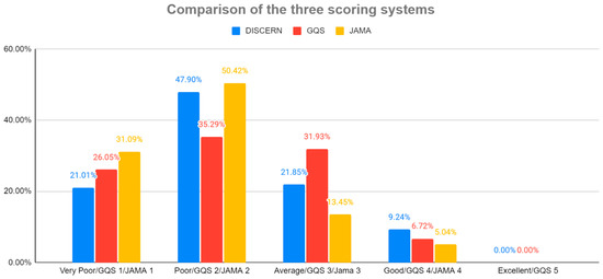Percentage of video grades according to DISCERN, GQS, and JAMA.