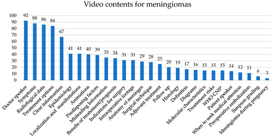 Data considering the video content for meningiomas are presented in Figure 5.
