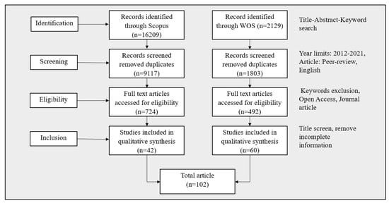 The initial search yielded 16,209 and 2129 items, respectively, from Scopus and Web of Science (WOS).