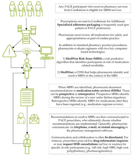 MRM workflow. Abbreviations: CDSS = clinical decision support software; MRM = medication risk mitigation, MRP = medication-related problem; PACE = The Program of All-Inclusive Care for the Elderly.