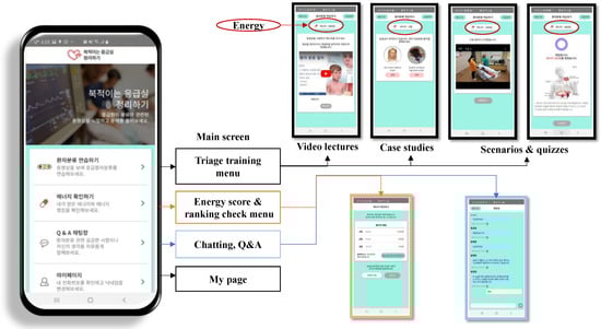 A few KTAS-based education programs have been developed, including the official hospital-KTAS provider course, an offline training program consisting of lectures and text-based case studies []. However, one-time education programs offered offline suffer from certain limitations. Specifically, to improve their triage competencies, emergency nurses need to experience triage repeatedly and continuously [], which one-time courses do not offer. According to extant review studies, smartphone-based education significantly improved nursing and medical science practitioners’ clinical competency, knowledge, attitude, performance, and confidence [,]. Since online education via mobile devices can be accessed freely and repeatedly without spatial and temporal constraints, a positive effect can be expected for app-based triage education centered on the KTAS.