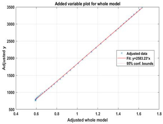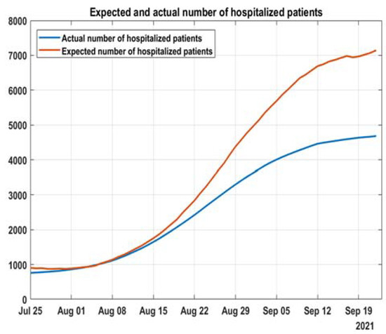 The fitted model for hospitalizations with data from 25.07 to 3.09 has almost perfect characteristics (Table 1), as shown in Figure 4, including adjusted . Here, = 2583.2 and .