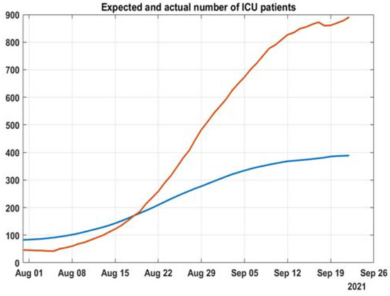 Deviation from a model for ICU in the period of 4 to 21 September 2021.