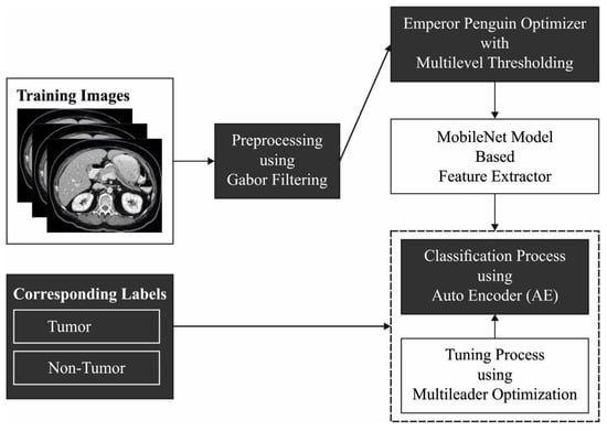 In this study, a novel IDLDMS-PTC technique was derived from examining the CT images for the existence of pancreatic tumors. The proposed IDLDMS-PTC technique comprises several subprocesses, namely GF-based pre-processing, EPO-MLT-based segmentation, MobileNet-based feature extraction, AE-based classification, and MLO-based parameter optimization. The utilization of the EPO approach to better threshold selection and the MLO algorithm for parameter tuning assists in accomplishing improved classification results. Figure 1 illustrates the overall process of the IDLDMS-PTC technique.