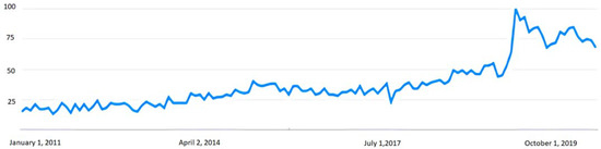 Number of searches for the term “meditation” between 2011 and 2021 in the West. Source: Google Trend.