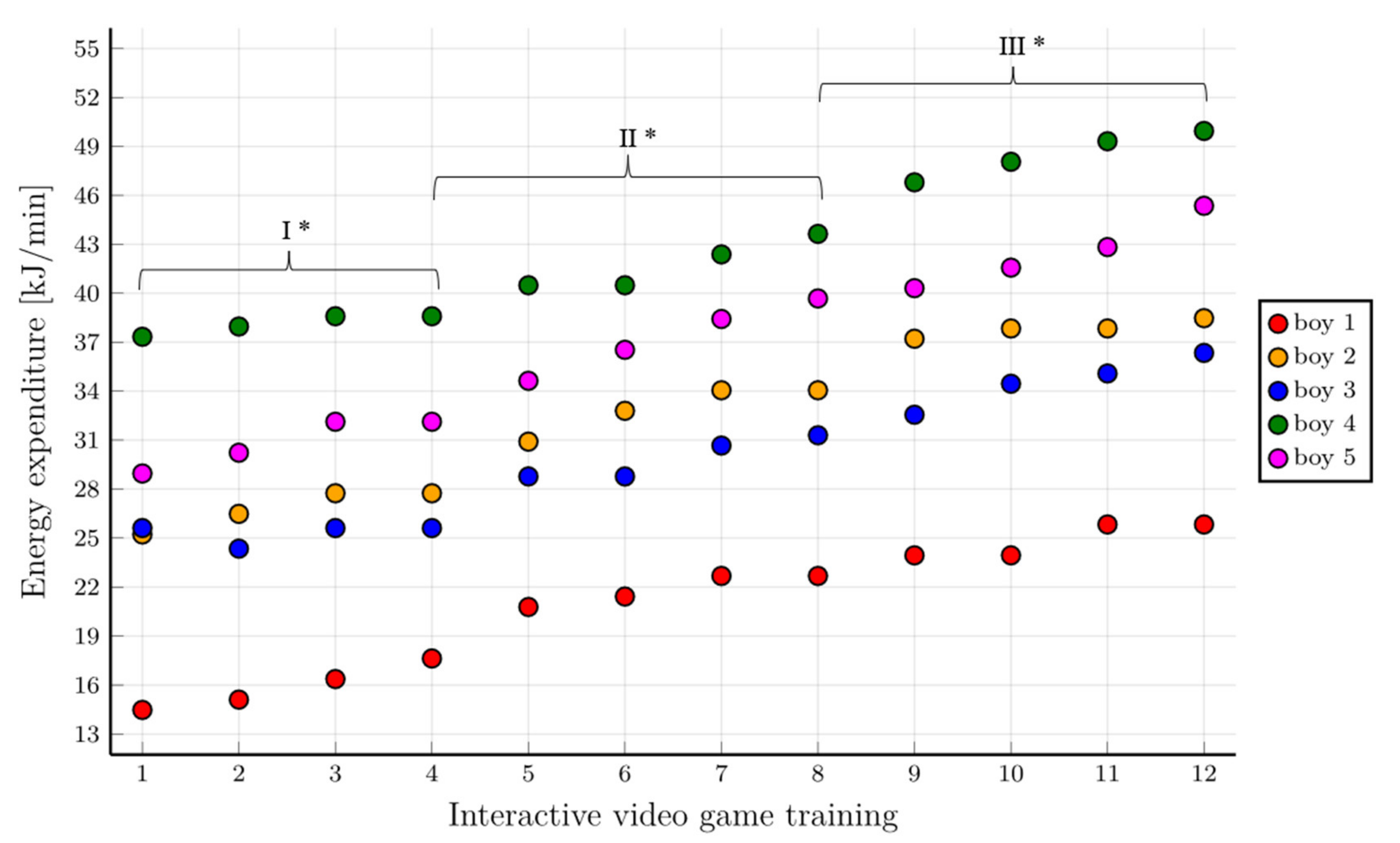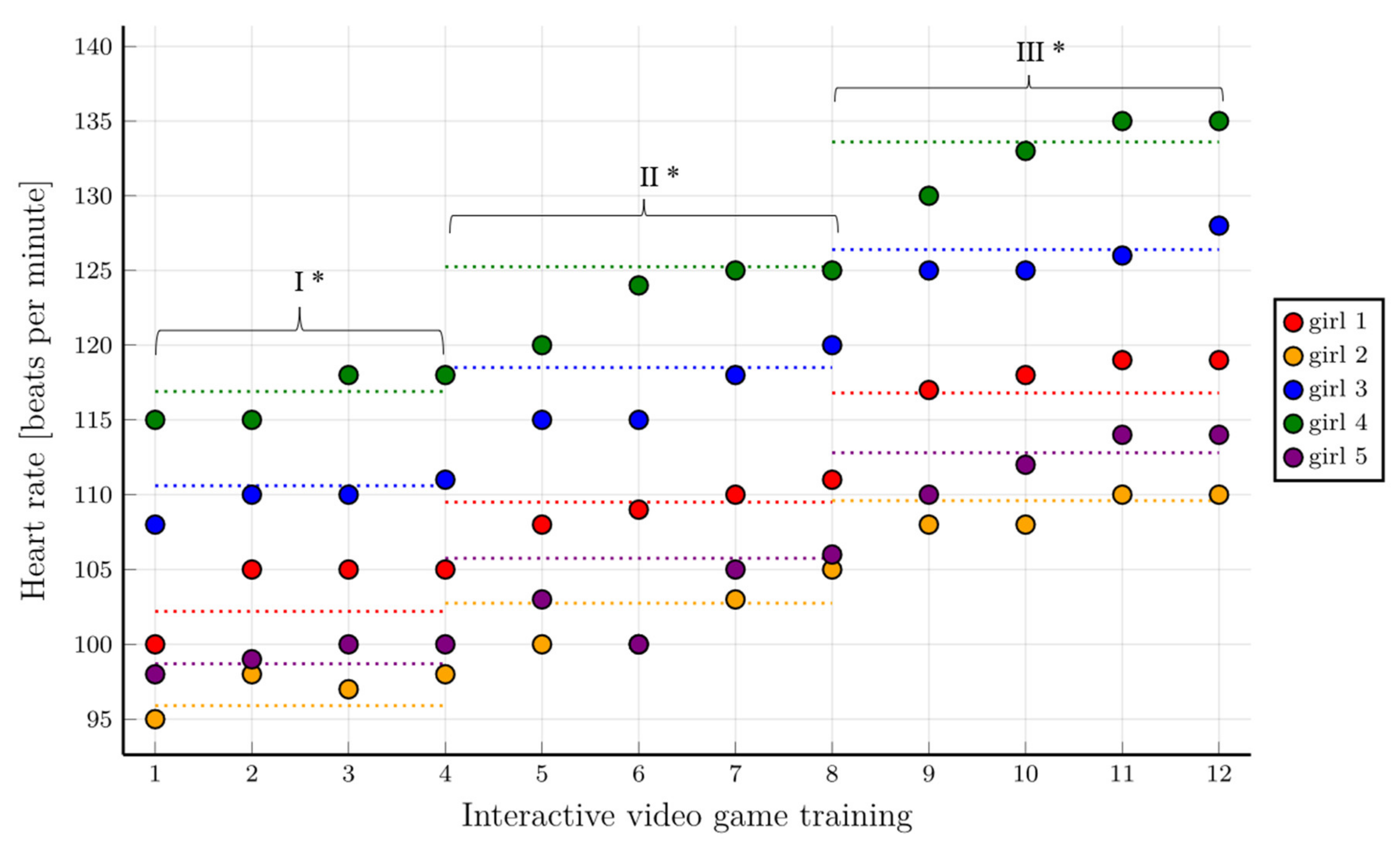 - Baranowski, T.; Abdelsamad, D.; Baranowski, J.; O’Connor, T.M.; Thompson, D.; Barnett, A.; Cerin, E.; Chen, T.-A. Impact of an Active Video Game on Healthy Children’s Physical Activity. Pediatrics 2012, 129, e636–e642. [Google Scholar] [CrossRef]