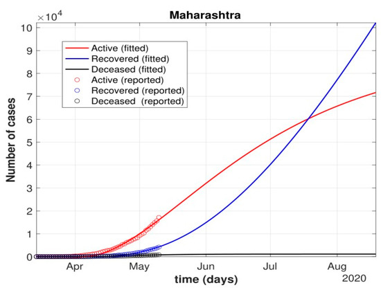 Figure 12. Fit of the proposed model (1) for the number of COVID-19 cases in Maharashtra.