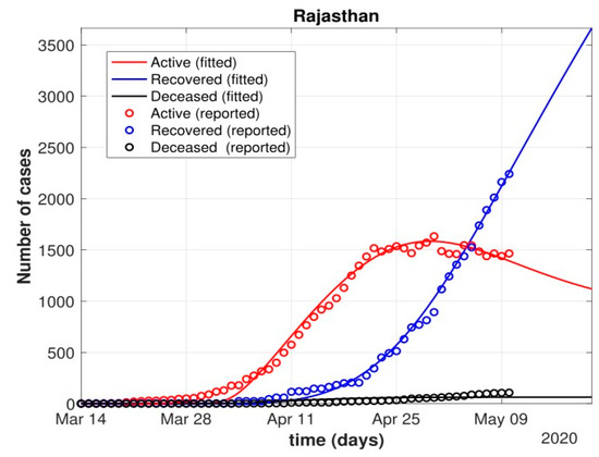 Figure 14. Fit of the proposed model (1) for the number of COVID-19 cases in Rajasthan.