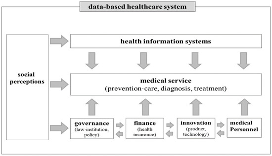 In many countries, including the United States, Japan, and China, as well as in Europe, governments and private companies are already working on large-scale digital healthcare projects and attempting to enhance their competitiveness in the field of healthcare [5]. Moreover, since data are a key element of innovation in digital healthcare, these countries are paying a lot of attention to building data-based healthcare systems that could bring about effective changes not only in disease treatment, but also in prevention and care [6]. In other words, the significance of the data-driven healthcare economy is increasing. We define this economy as an emerging ecosystem that creates new value based on all types of data, and on data analysis related to healthcare. These countries are striving to devise policies at the national level in order to provide optimized medical services to individuals, by integrating healthcare data which are currently dispersed among medical institutions, administrative agencies, research institutes, and individuals [7].