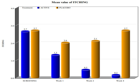 Mean value of itching (p value < 0.0001).
