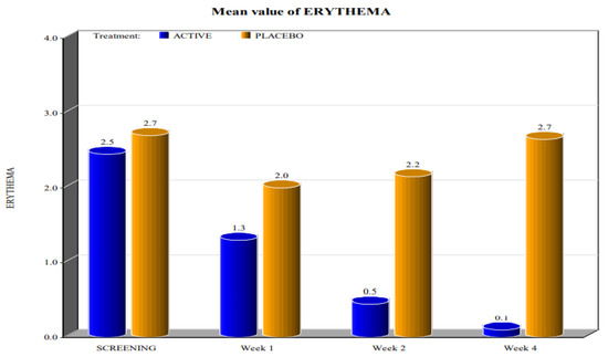 Mean value of erythema (p value < 0.0001).