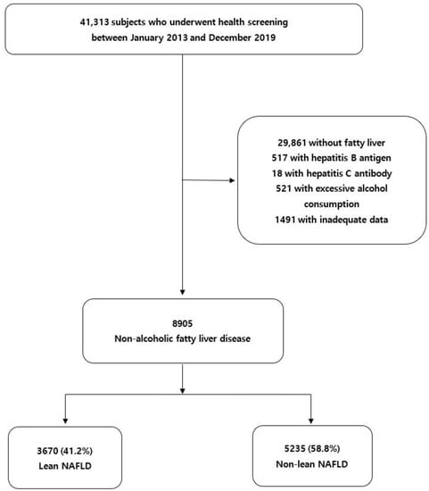 - Leung, J.C.; Loong, T.C.; Wei, J.L.; Wong, G.L.; Chan, A.W.; Choi, P.C.; Shu, S.S.; Chim, A.M.; Chan, H.L.; Wong, V.W. Histological severity and clinical outcomes of non-alcoholic fatty liver disease in nonobese patients. Hepatology 2017, 65, 54–64. [Google Scholar] [CrossRef] [PubMed]