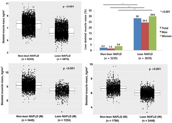 Chicago/Turabian StyleByeon, Jun-Hyeon, Min-Kyu Kang, and Min-Cheol Kim. 2022. "Association of Low Skeletal Muscle Mass with the Phenotype of Lean Non-Alcoholic Fatty Liver Disease" Healthcare 10, no. 5: 850. https://doi.org/10.3390/healthcare10050850