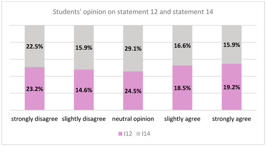 Statement 12: “It is inequitable if a victim of domestic violence refuses to ask for dental treatment any more because the dentists always accuse them of not respecting medical indications and dental appointments.” Question 14 states: “It is inequitable if a dentist prioritizes treatment for a woman abused by her husband.” This refers to victims of domestic violence, a vulnerable population group. The respondents’ opinions were the following (Figure 2):