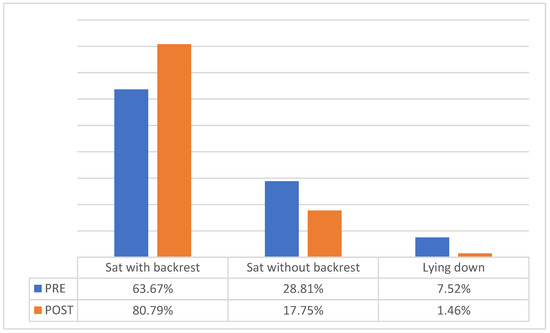 Column diagram of postural changes when watching television pre- and post-intervention.