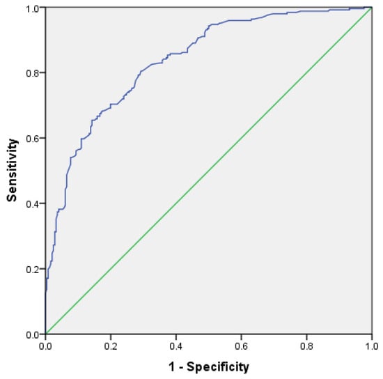The next step was performing an ROC (Receiver Operating Characteristic) analysis. The result showed that upon an intersection coordinate of 0.405, this formula exhibited 82.9% sensitivity and 65.0% specificity, with 83.8% predictive capability according to the area under the curve (AUC) value (Figure 1).