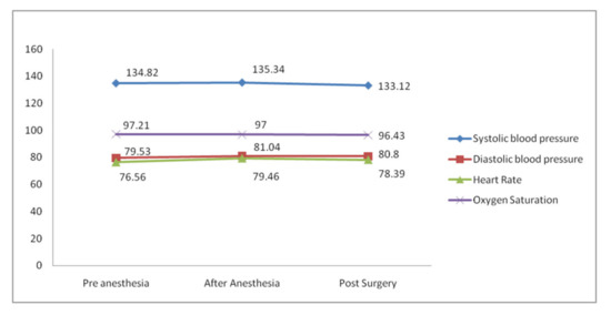 Surgical management of periodontal disease includes the periodontal flap operation, grafts and gingivectomy, which are carried out under local anesthesia. It is known that an alteration in blood pressure during the dental surgical procedure is natural even in physically healthy patients [13]. Many studies have assessed the prevalence and etiology of dental anxiety in distinctive age groups [14,15,16,17], and a few studies have evaluated dental anxiety and vital signs during different dental procedures [18,19,20]. Hence, it becomes necessary to understand the hemodynamic alterations such as systolic and diastolic blood pressure as well as oxygen saturation during a dental surgical procedure involving crown lengthening in systemically healthy individuals.
