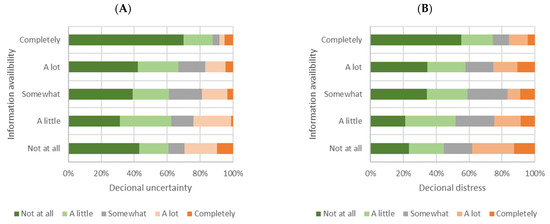 Influence of information availability on (A) decisional uncertainty and (B) decisional distress.