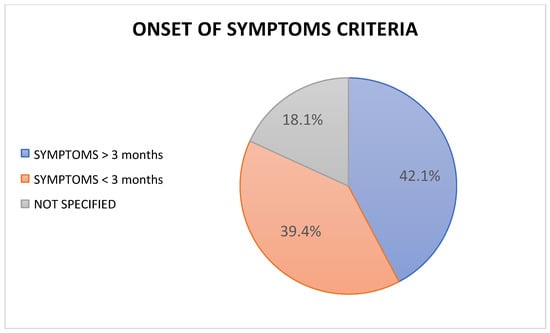 Results concerning the terminology, diagnostic test, and onset criteria of symptoms used in the selected articles are reported in Figure 2, Figure 3, and Figure 4.