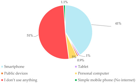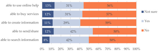 Figure 2 shows that most respondents (59%) used a smartphone to access digital information. However, Figure 3 shows that almost half of respondents were not able to search for COVID-19 information, send or share knowledge or news about COVID-19, create a post on online channels for asking questions with government officers or relevant organizations, buy COVID-19 online services, ask for online help from governmental organizations. These people received daily news and information from offline channels during the pandemic.