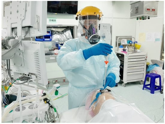- Luk, H.N.; Yang, Y.L.; Tsai, P.B. Application of plastic sheet barrier and video intubating stylet to protect tracheal intubators during Coronavirus Disease 2019 pandemic: A Taiwan experience. Cell Transplant. 2021, 30, 0963689720987527. [Google Scholar] [CrossRef]