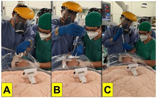 The following supporting information can be downloaded at: https://www.mdpi.com/article/10.3390/healthcare10061105/s1, Video S1: Intubation process in the case 1; Video S2: Intubation process in the case 2; Video S3: Intubation process in the Case 3; Video S4: Intubation process in the case 4; Video S5: Intubation process in the case 5.