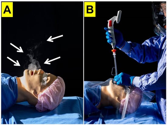 - Brewster, D.J.; Chrimes, N.; Do, T.B.; Fraser, K.; Groombridge, C.J.; Higgs, A.; Humar, M.J.; Leeuwenburg, T.J.; McGloughlin, S.; Newman, F.G.; et al. Consensus statement: Safe Airway Society principles of airway management and tracheal intubation specific to the COVID-19 adult patient group. Med. J. Aust. 2020, 212, 472–481. [Google Scholar] [CrossRef]