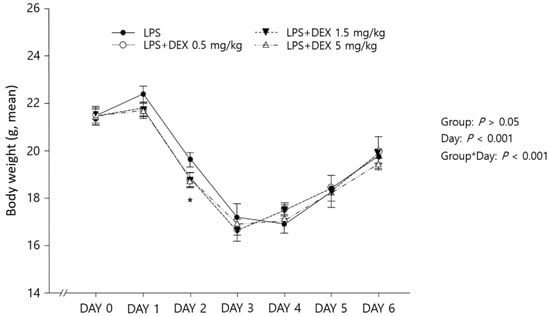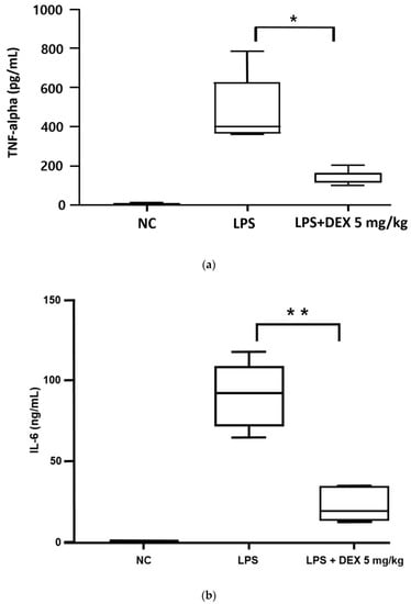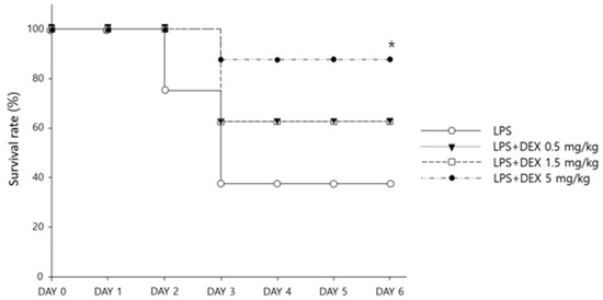 APA StyleSon, J.-y., Kwack, W. G., Chung, E. K., Shin, S., & Choi, Y. J. (2022). Effects of Early Initiation of High-Dose Dexamethasone Therapy on Pro-Inflammatory Cytokines and Mortality in LPS-Challenged Mice. Healthcare, 10(7), 1247. https://doi.org/10.3390/healthcare10071247