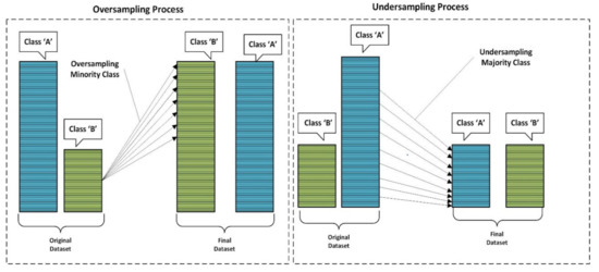 - He, H.; Bai, Y.; Garcia, E.; Li, S. ADASYN: Adaptive synthetic sampling approach for imbalanced learning. In Proceedings of the 2008 IEEE International Joint Conference on Neural Networks (IEEE World Congress on Computational Intelligence), Hong Kong, 1–8 June 2008; pp. 1322–1328. [Google Scholar]