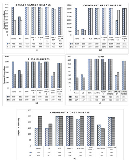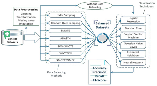 Kumar, V.; Lalotra, G.S.; Sasikala, P.; Rajput, D.S.; Kaluri, R.; Lakshmanna, K.; Shorfuzzaman, M.; Alsufyani, A.; Uddin, M. Addressing Binary Classification over Class Imbalanced Clinical Datasets Using Computationally Intelligent Techniques. Healthcare 2022, 10, 1293. https://doi.org/10.3390/healthcare10071293