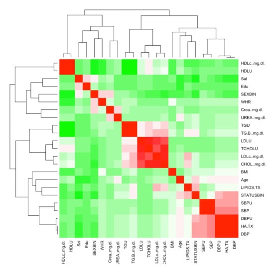 The database was provided by the Centro Médico Nacional Siglo XXI located in Mexico City. All Mexican patients signed an informed consent letter and the protocol meets the Helsinki criteria which were approved by the Ethics Committee of Instituto Mexicano del Seguro Social under the number R-2011-785-018. It includes 1787 patients, 898 positive cases of T2DM and 889 control patients, according to gender, this database includes: 892 men and 895 women. In Figure 2 shows the Starting correlation between the features.