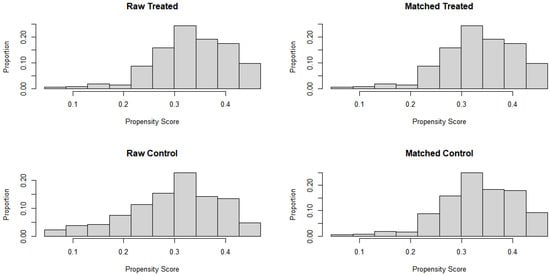 3.3. Comparison of Characteristics between Groups before and after Matching