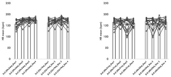 Descriptive statistics of heart rate (HR) responses over the different formats, pitch dimensions, and days.