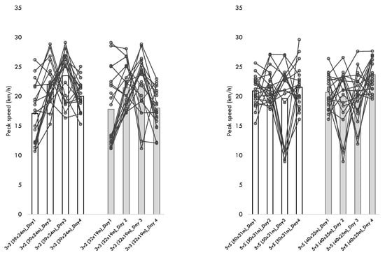 Descriptive statistics of peak speed over the different formats, pitch dimensions, and days.