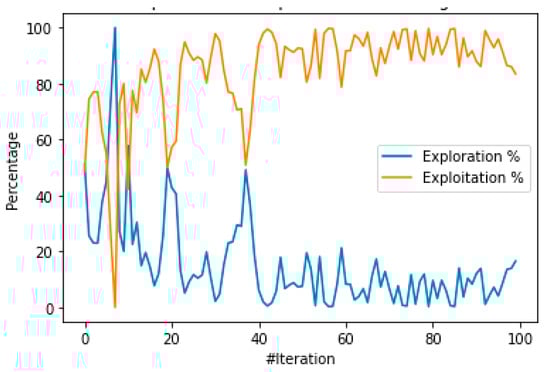 In the case of the SVM optimization, the optimizer had a good balance between the exploration and the exploitation phases, as seen in Figure 3. This allowed an excellent performance in identifying reasonable solutions; the confusion matrix obtained is presented in Table 4.