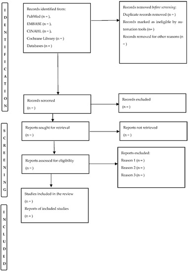 As mentioned previously, the selection of eligible articles for inclusion in the systematic review will be performed independently by two reviewers; a third senior reviewer will resolve any disagreements. The Cohen’s Kappa coefficient and percentage agreement will be used to verify inter-evaluator reliability for the classification of the individual components [39]. The flowchart for article selection for this systematic review is provided in Figure 1.