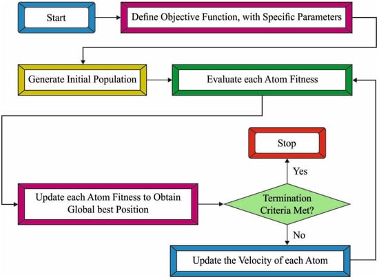 whereas and define the communication and internal constrain forces correspondingly, depicts an arbitrary number amongst 0 and 1, and refers to the subset of the atom population containing atoms with optimum main function values. Additionally, demonstrates the place of an optimum atom from the iteration from the dimensional space, illustrates the Lagrangian coefficient, stands for the depth coefficient, and implies the weighted coefficient. Figure 2 illustrates the flowchart of the ASO technique.