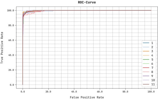 A detailed ROC analysis of the ASODCAE-SLR system on the test dataset is illustrated in Figure 9. The outcomes represented by the ASODCAE-SLR algorithm have demonstrated their capability in categorizing distinct classes on the test dataset.