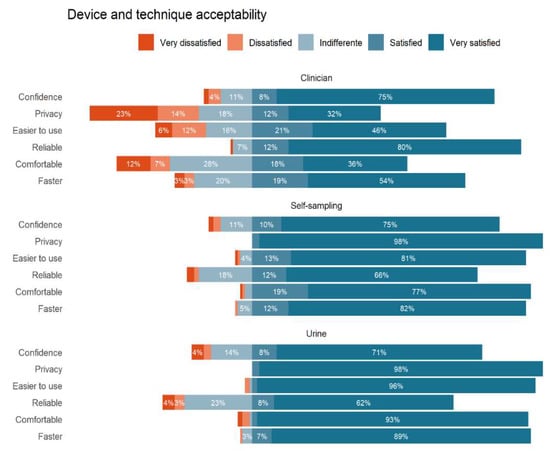 - Schaafsma, M.; van den Helder, R.; Bleeker, M.C.G.; Rosier-van Dunné, F.; van der Avoort, I.A.M.; Steenbergen, R.D.M.; van Trommel, N.E. Experiences and preferences towards collecting a urine and cervicovaginal self-sample among women attending a colposcopy clinic. Prev. Med. Rep. 2022, 26, 101749. [Google Scholar] [CrossRef]