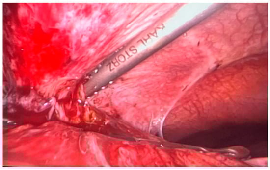 We proceeded with the dissection, but the inflammation of the tissue was severe, and it modified the anatomy of the subhepatic region. We decided on a conversion to right subcostal incision. The cholecystectomy was performed retrograde after the dissection of the adhesions, with the identification of the cystic channel and the artery that were ligated and sectioned.