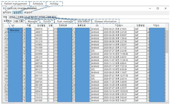The manager program was developed using Visual Studio 2019, and the server was Visual Studio code. Mobile applications were developed using Android Studio for Android and Xcode for iOS (Table 1).