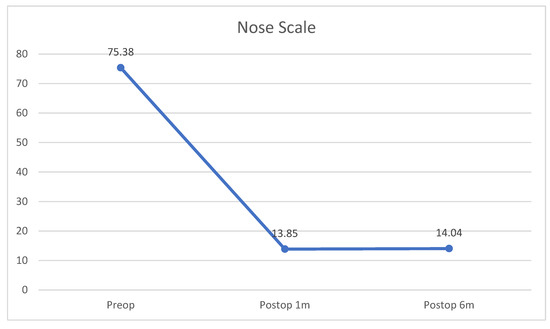 Statistical analysis was performed using SPSS 25.0 (IBM, Armonk, NY, USA). A significance threshold of p < 0.05 was used. Repeated measures ANOVA and paired sample t-tests were used for data analysis (NOSE scale and VAS).