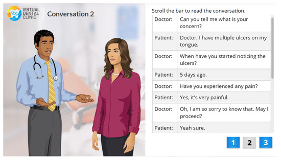 Although there was a significant improvement in the post-test scores for both the groups, it is necessary to note that participants’ self-appraisals of the learning experience were reported in favour of the role play. Previous studies have shown that motivation and active engagement in learning are important parts of role play [22,23]. Many students in the experimental group agreed that VOMC made dentist–patient interaction more interesting and realistic; however, they still preferred role play. Through our focus group discussion, we explored the reason for this student’s preference. Lack of personalization was identified as a significant disadvantage of VOMC by our study participants. Role play presented the convenience of having an active discussion with the facilitator, especially when acquiring knowledge regarding differential diagnoses beyond the scope of given case scenarios. Furthermore, a role play activity better-stimulated students’ critical thinking skills as the facilitator asked questions to all the students, encouraging them to brainstorm for answers. At the end of the role play activity, the facilitator gave personalized feedback on the performance of students, while students using VOMC were not able to review their performance in that detail. These factors might contribute to the higher perceptions of the usefulness of the role play activity compared to VOMC. Another concern was the use of a computer-generated monotonic voice-over in the digital educational resource. The monotonic voice may dampen the patient’s emotions, thus making it difficult to show empathy and build rapport with patients.