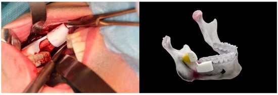 Although there are many complex neoplasms that can grow in the jaws (odontogenic tumors, such as ameloblastomas, and osteolytic lesions, such as metastatic tumors), the most frequent are odontogenic cysts (OCs). An OC is a pathological, epithelial-lined cavity containing fluid or semi-fluid that arises from the epithelial remnants of tooth formation. Odontogenic cysts are often asymptomatic and therefore may grow before any clinical signs are noted, so their presence is often an incidental finding on radiographic examination. Most OCs are treated by either enucleation or marsupialization. Enucleation involves the complete removal of the cyst and is the treatment of choice [39]. This technique involves the creation of a surgical window in the wall of the cyst, decompression of the cyst and removal of its content. In both cases, it is mandatory to access the cyst in the most direct way, avoiding injury to soft tissues or other anatomical structures, such as nerves or vessels, to perform an adequate treatment. Access to compromised anatomical sites, such as the jaw’s bony interior, poses a permanent challenge in modern medicine despite advances in diagnostic and surgical techniques. (Figure 4).